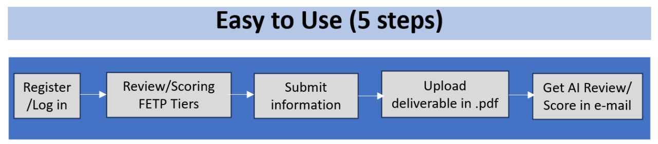 First web application built specifically for the Field Epidemiology Training Program (FETP) to review and score deliverables —within minutes.